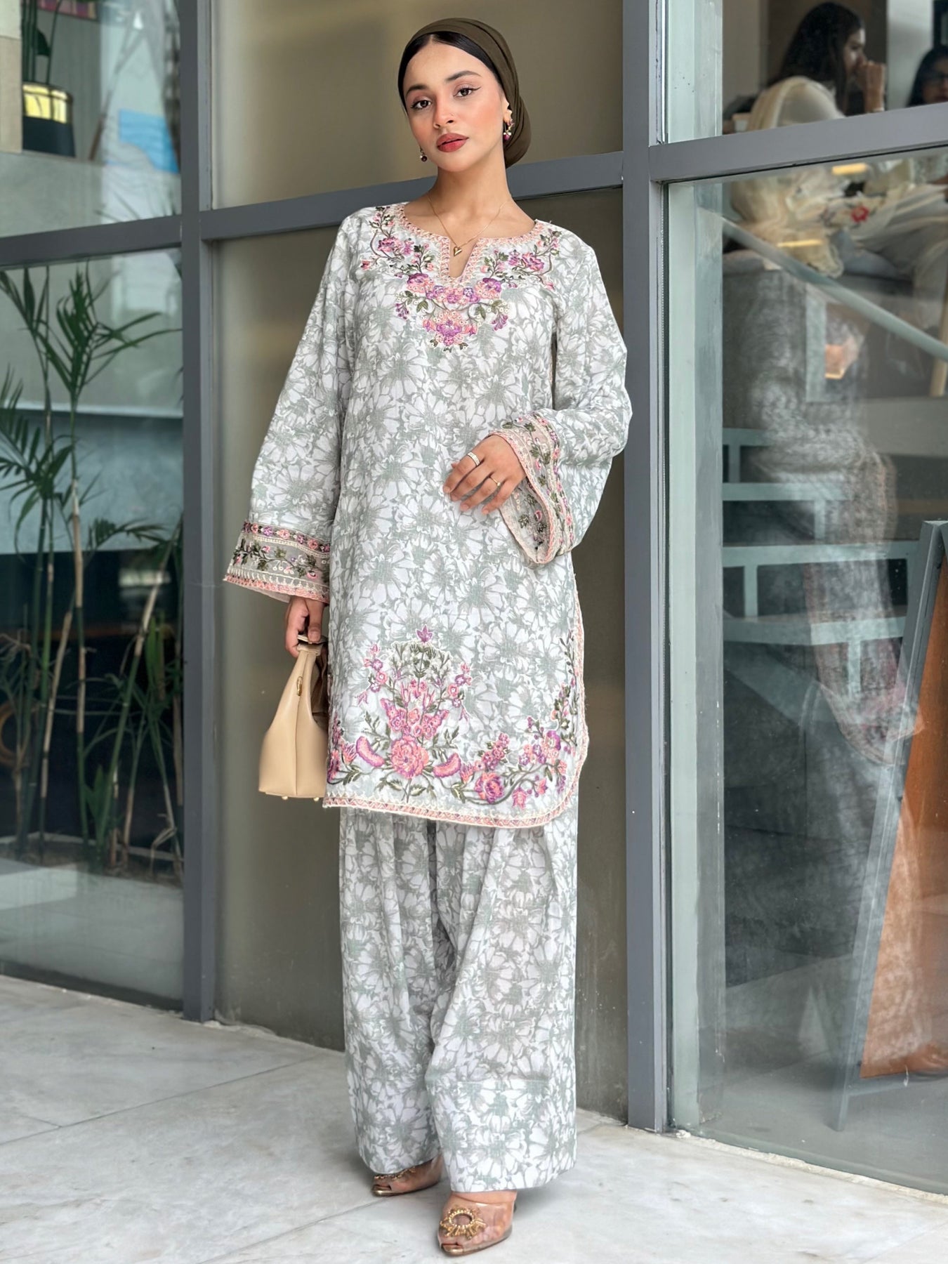 Style Tip: Try pairing your Farshi Shalwar set with nude or minimalistic heels and gold jhumkas. Add a low bun or braid, and let the outfit speak.